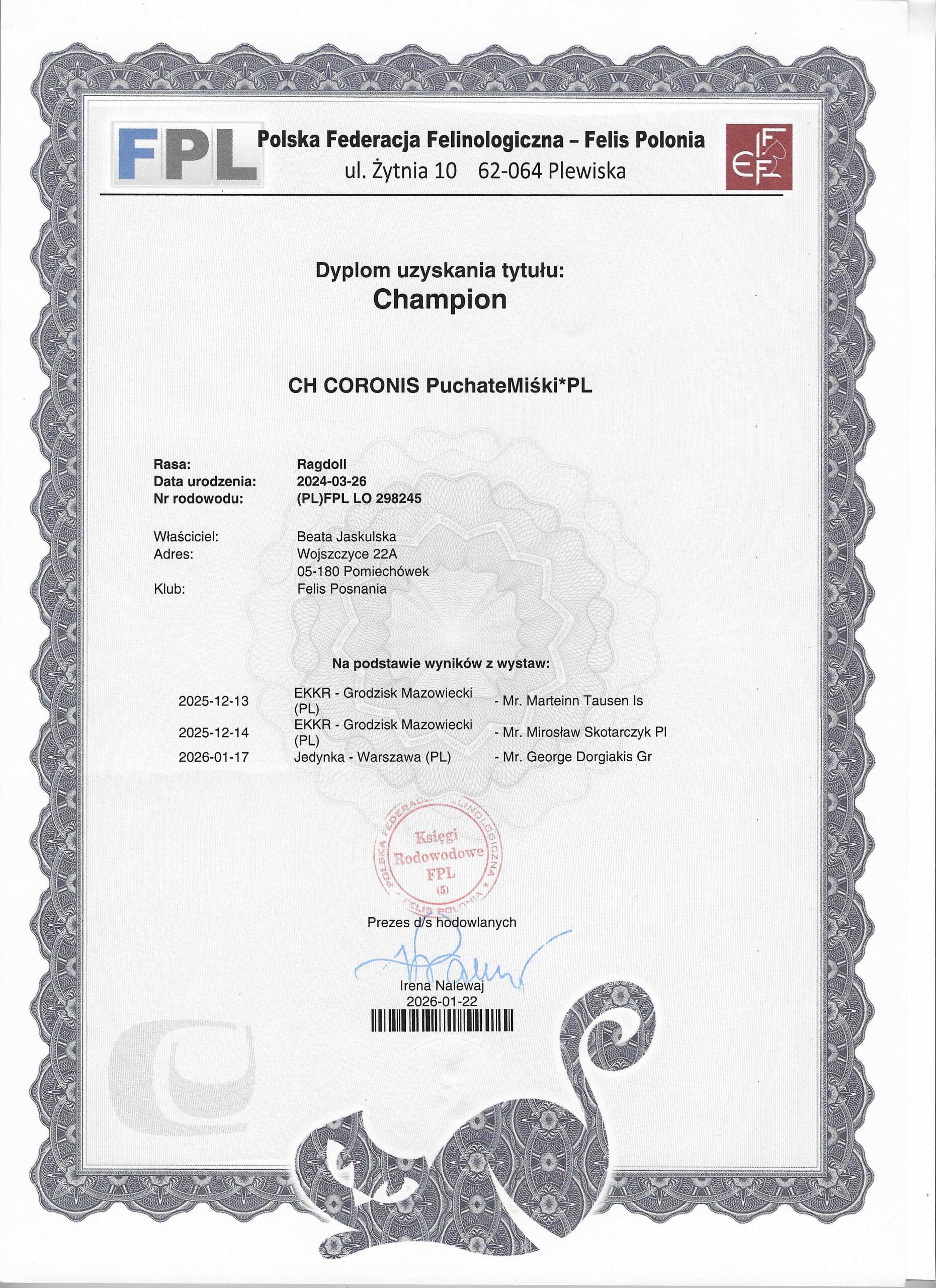 ojciec: DOLAR Nasze Mruczki*PL – RAG n 03